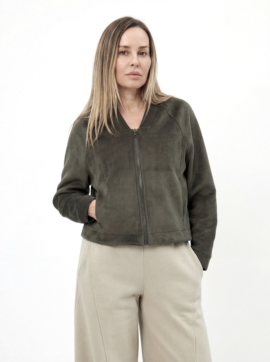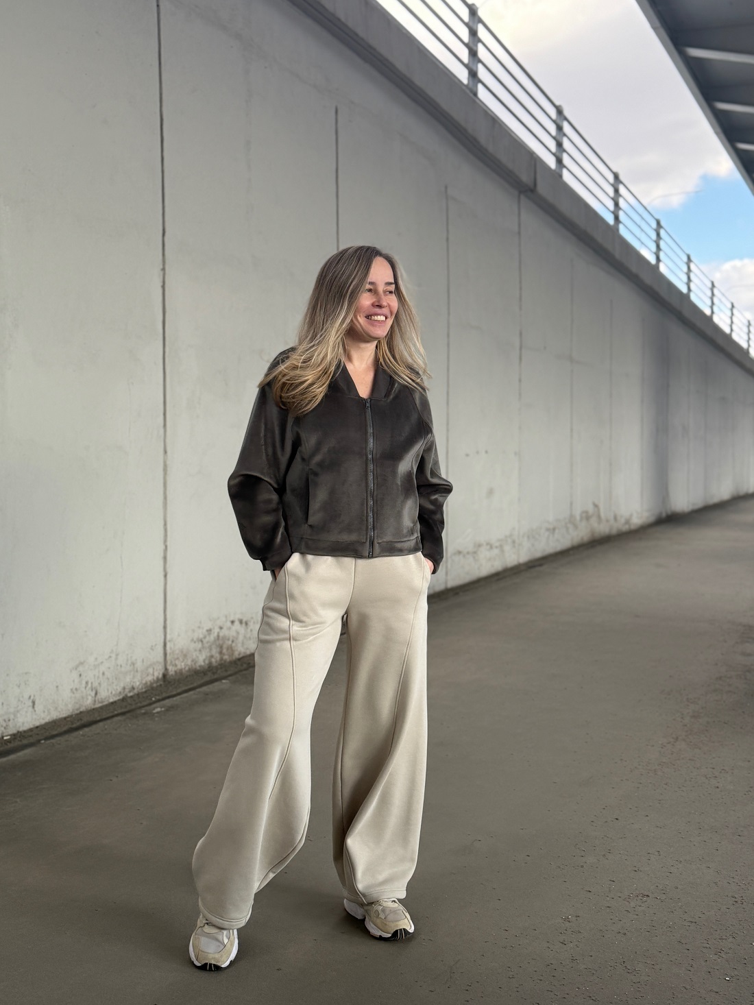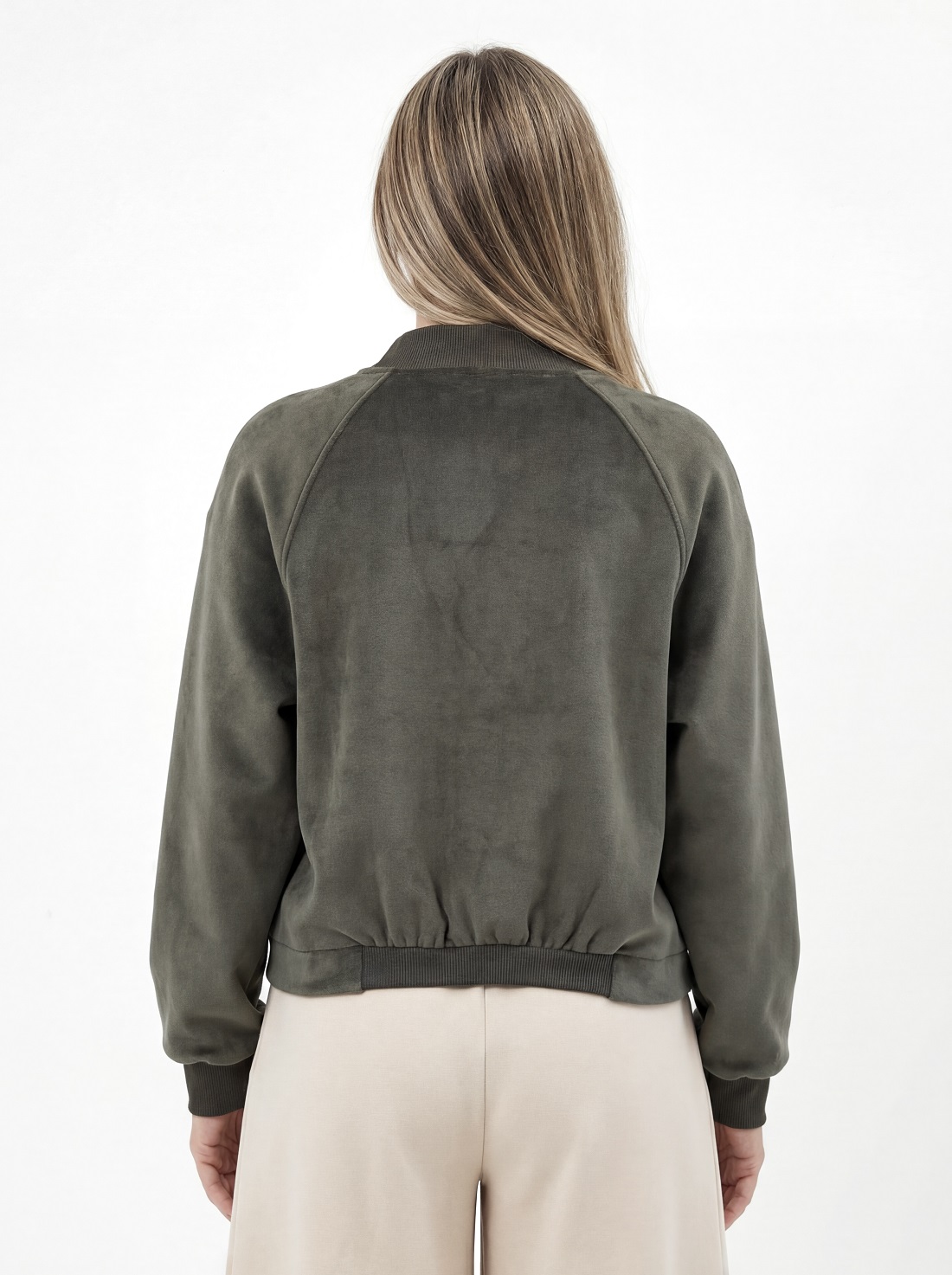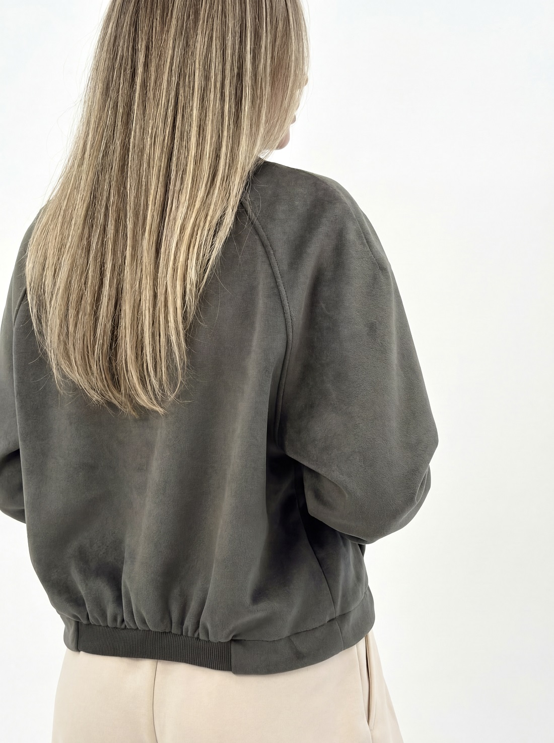 Бомбер с оригинальным воротником и вставками из кашкорсе.