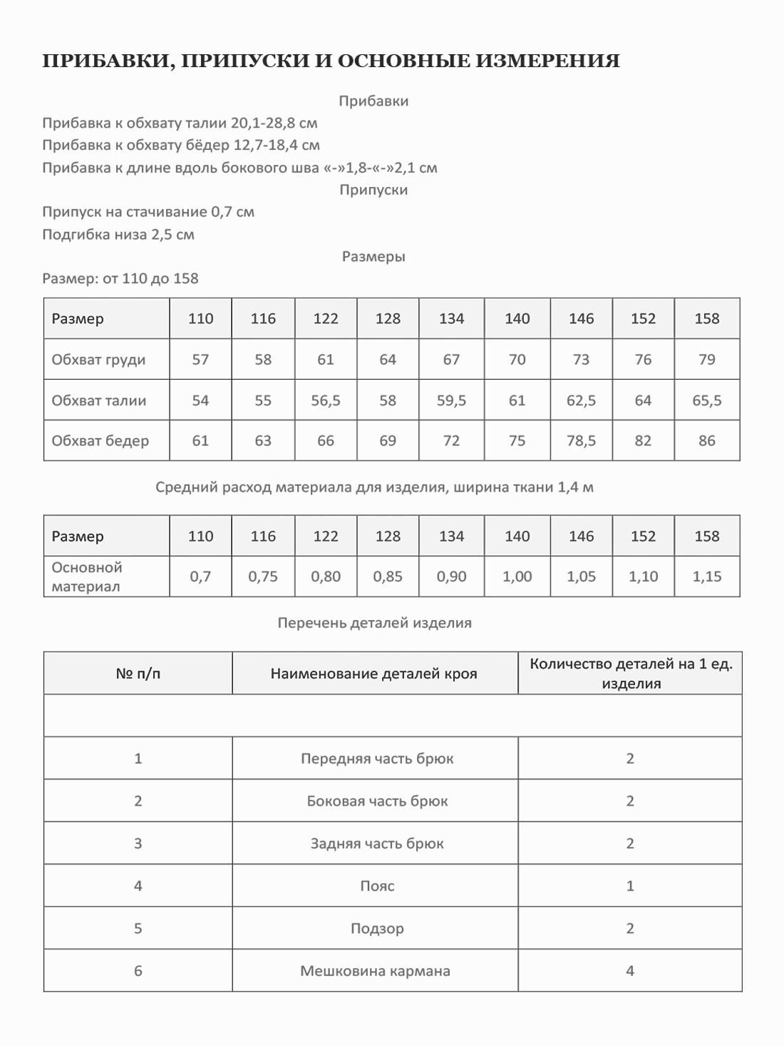 Размеры: градация от 110 до 158 см роста (всего 9 размеров), при покупке всего пакета скидка 40%.