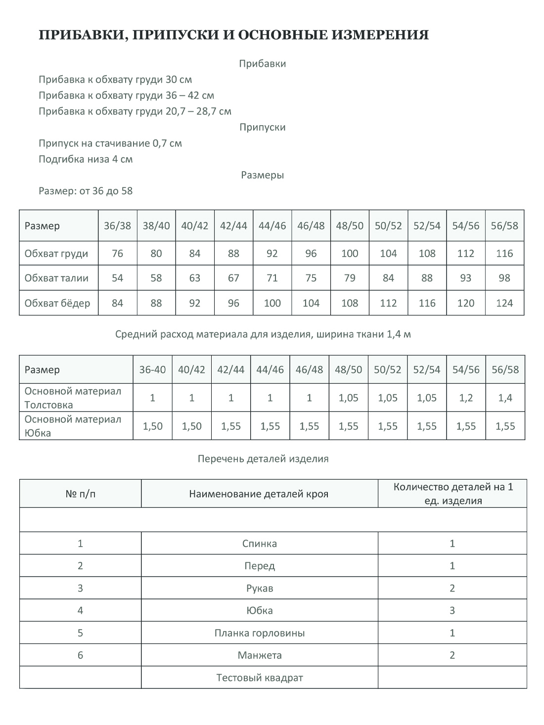 Техническая документация к лекалу включает в себя: описание пошива, прибавки, припуски и основные измерения в модели, средний расход материалов, раскладку на ткани.